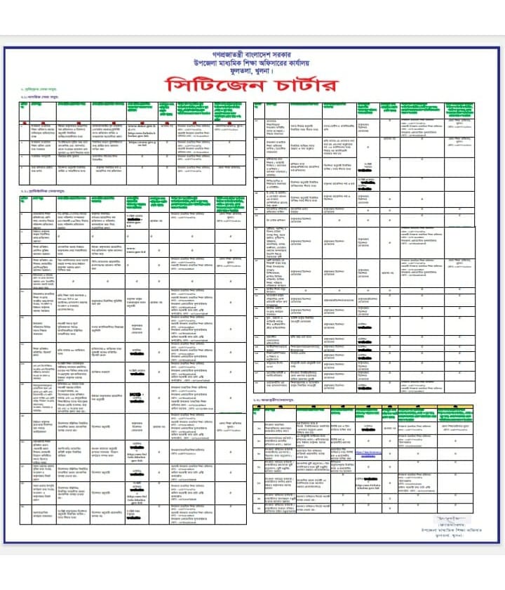 সিটিজেন চার্টার ২০২৪-২৫ , উপজেলা মাধ্যমিক শিক্ষা অফিস, ফুলতলা , খুলনা।