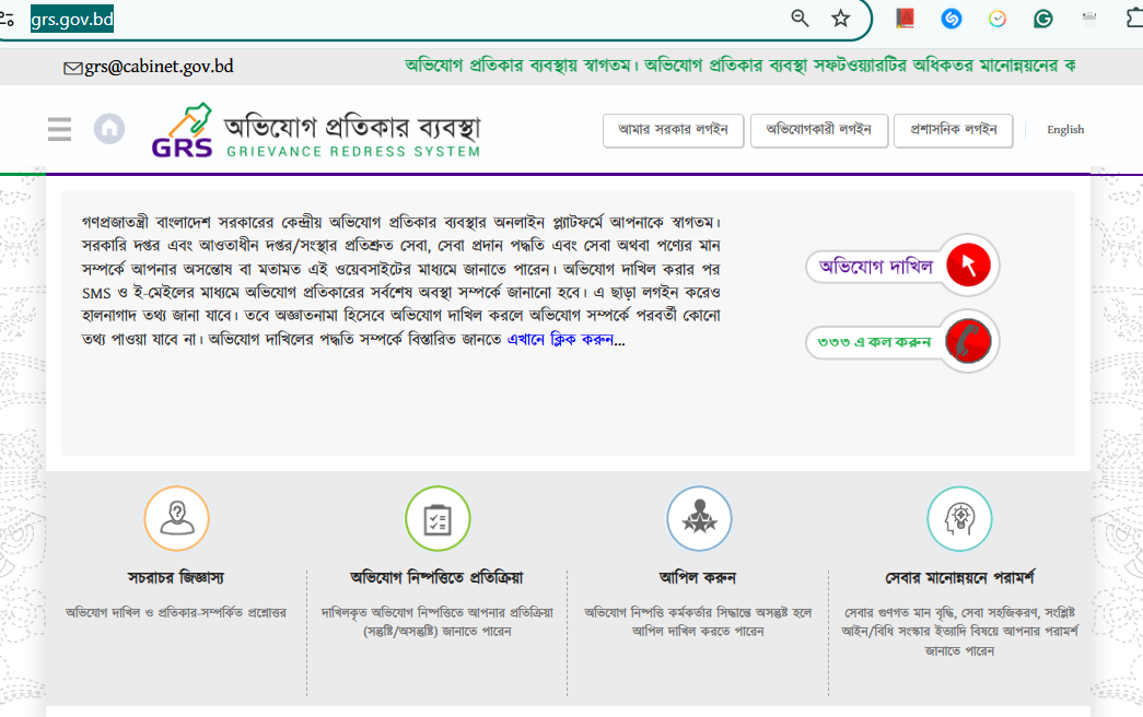 অভিযোগ প্রতিকার ব্যবস্থা পদ্ধতি